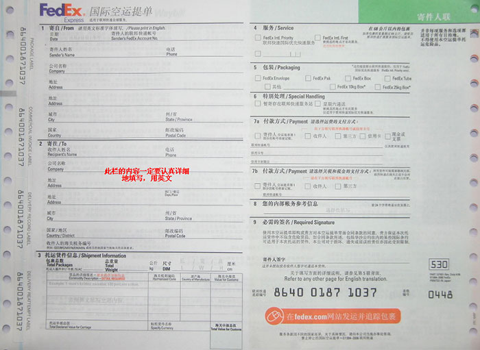 虽然以上运单格式不尽相同,但是需要填写的内容基本上是一致的,都有如下内容: