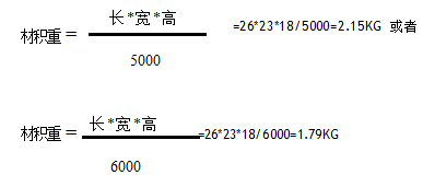 如上图,分别量得货物的长宽高25.1CM、22.5CM,17.7CM,那么其材积重计算如下: