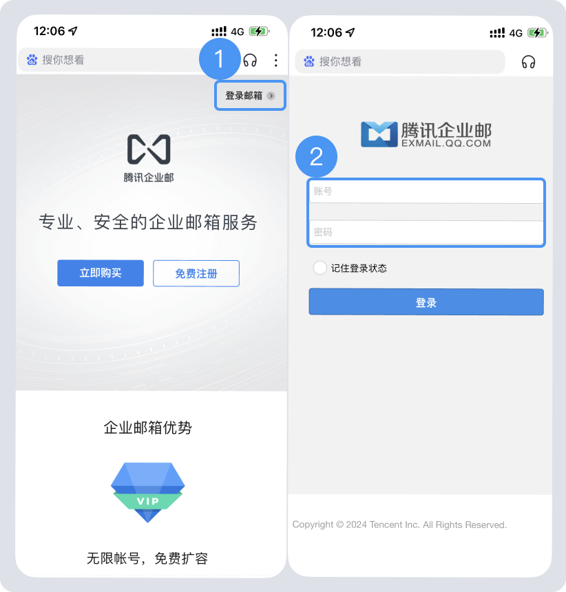 一、手机浏览器输入:m.exmail.qq.com 访问腾讯企业邮箱