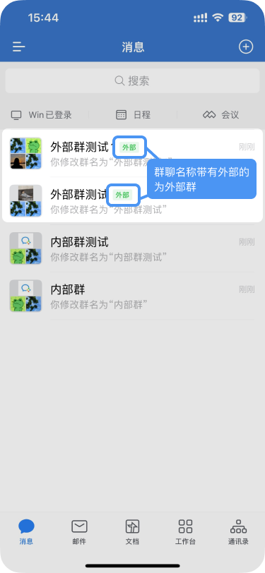 发起群聊时,同时选择企业通讯录人员以及外部联系人/客户/微信联系人,则为外部群。