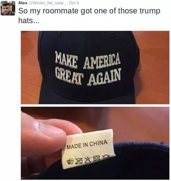 特朗普也不会把帽子的生产线搬回美国,交货时间延长好几倍,单价也翻好几倍,残次品率高出一大截。