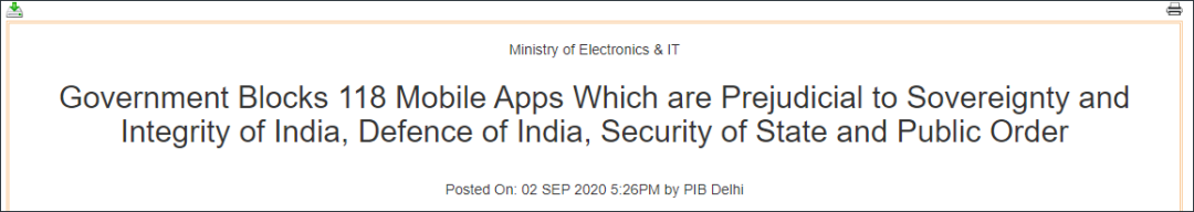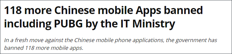 印度信息与科技部(MEIT)宣称,“这118个软件不利于印度主权与完整、印度国防、国家安全与公共秩序。”
