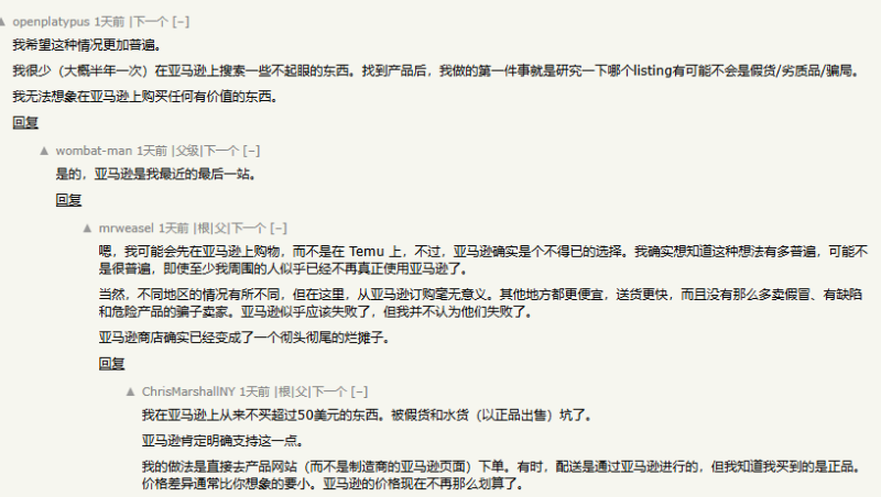 对于该案件的判决结果,有用户评论道,“我希望这种情况更加普遍,我大概半年一次在亚马逊上搜索一些小东西,找到产品后,第一件事就是研究一下哪个listing可能不是假货/劣质品/骗局”。