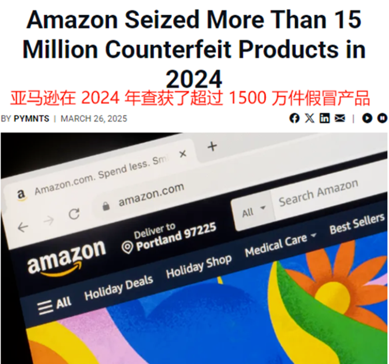 2024年亚马逊查获超1500万件假冒产品 图源:PYMNTS