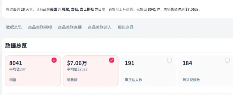 打开TikTok美区鞋靴排行榜,销量排名前列的均是夏日凉鞋,且其中大多为女士拖鞋/人字拖。比如来自Crafted Chic Shoes小店的一款售价31.87美金的女士绑带凉鞋,过去28天内共售出8041件,总销售额达到7.06万美金,位居榜单第8。