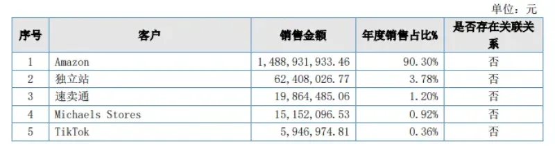 作为成立于2010年,拥有十几年经验的老牌大卖,千岸科技算是比较早一批的亚马逊玩家了。年报显示,该公司虽然在亚马逊、独立站、速卖通、Michaels Stores、TikTok等平台上均有布局,但其非常依赖亚马逊,近三年销售额占比均超过90%。