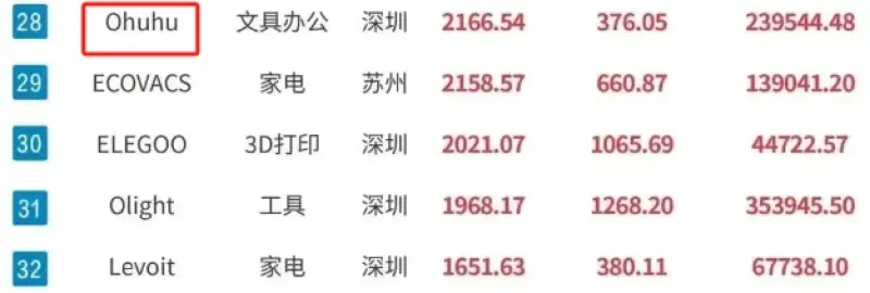 根据每日经济新闻X深圳易势科技联合发布的《中国跨境电商品牌影响力百强榜(2024年第四季度)》,Ohuhu排名第28位,是唯一一个上榜的文具办公类品牌,可见其强劲实力。