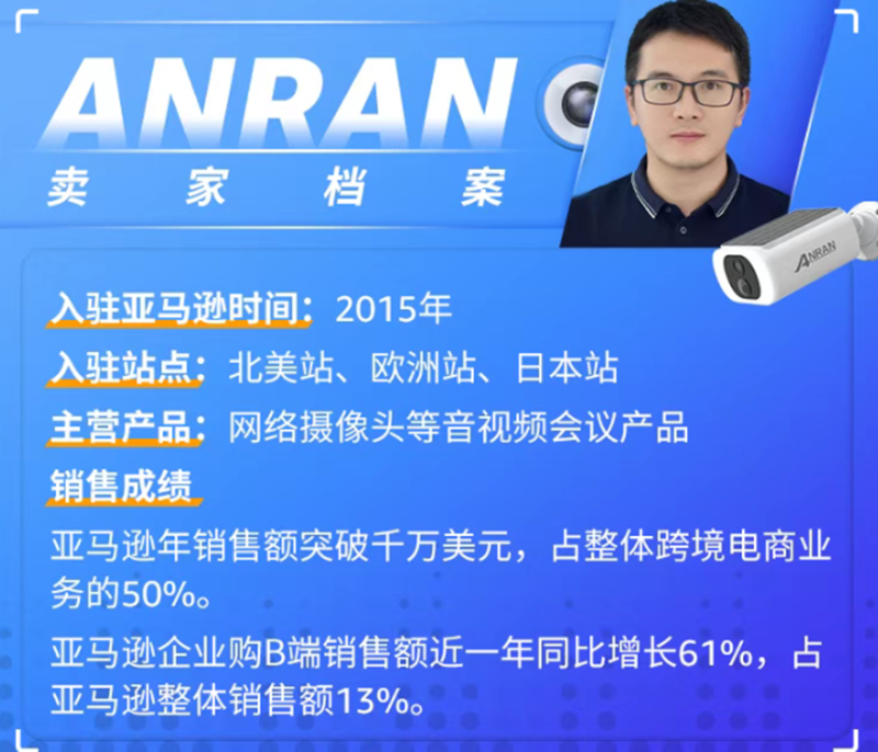 在一系列创新和变革下,ANRAN的业绩也突飞猛进,2023年该公司全渠道GMV就突破三亿元人民币。值得一提的是,目前,ANRAN已成为亚马逊千万美元级的超级大卖,平台营收占整体跨境电商业务的50%。