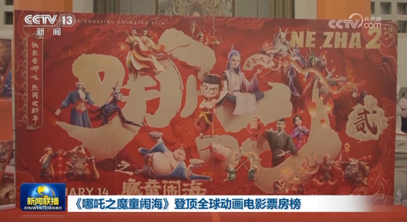 哪吒2登顶全球动画电影票房榜 图源:央视