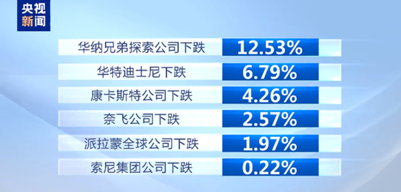 日前,由于美国对华滥施关税,国家电影局发言人认为这一举动必然会削弱国内观众对美国电影的好感度,并表示将遵循市场规律,适度减少美国影片进口数量。消息一出,美国多家电影公司的股价应声下滑,华特迪士尼和华纳兄弟探索公司的股价当日分别下跌6.79%和12.53%。