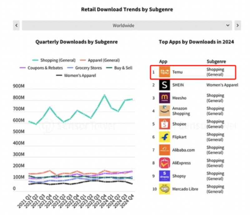 Power Retail的数据则指出,2024年,Temu不仅是澳大利亚iPhone用户下载量最高的程序,同时也是全球下载量排名第一的购物类应用。而在Similarweb发布的2025年澳大利亚数字100强报告中,Temu也跻身成为澳大利亚增长最快的网站,独立访客数量同比增长72%。