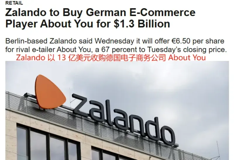 去年年底,Zalando宣布同意以约12亿欧元的价格收购竞争对手About You,此次收购预计将于今年夏季完成。Zalando在声明中表示,这次合作有利于帮助其实现到2028年占据欧洲时尚市场15%份额的目标。