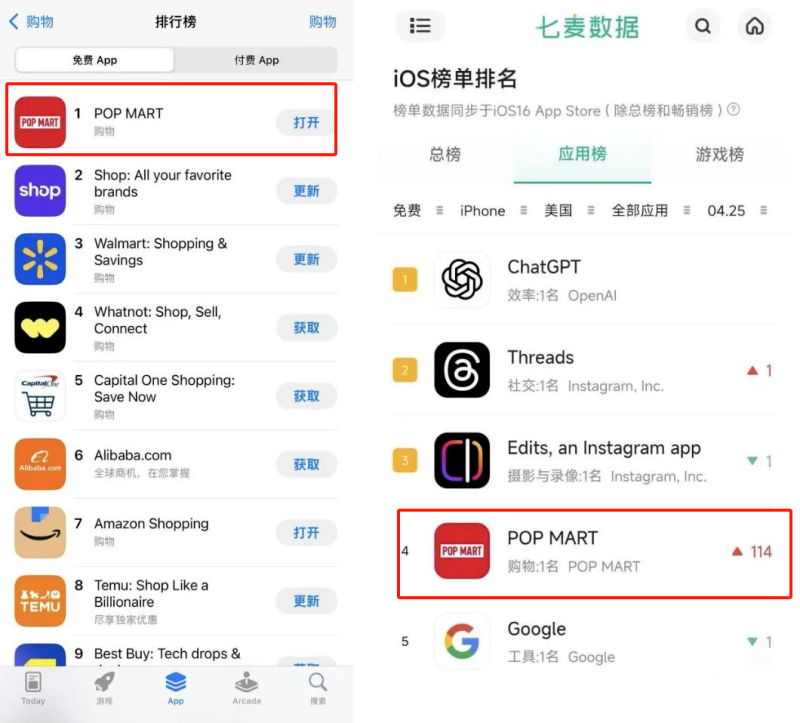 近段时间,泡泡玛特LABUBU在海外又掀起了一股抢购热潮,许多消费者为了买到限量发售的LABUBU产品,自发排起了一眼望不到头的长队。而在美国App Store购物榜上,泡泡玛特APP的热度也是直线飙升,直接在免费总榜中也跃升至第4名。