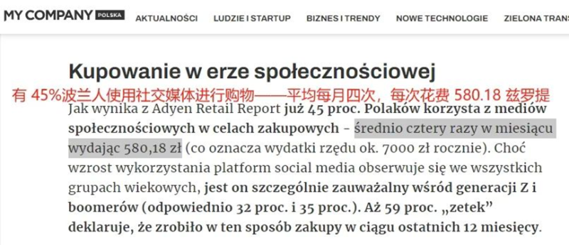 45%波兰消费者用社媒平台购物 图源:mycompanypolska