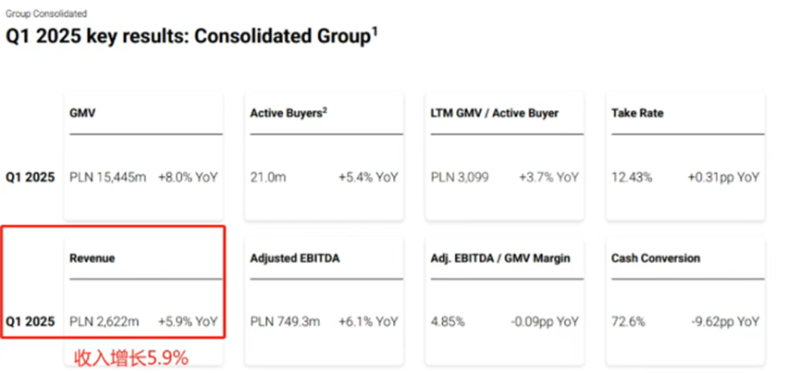 说到波兰电商,就绕不开Allegro,作为波兰市场独一无二的霸主,Allegro的成绩可以说是无人匹敌。仅在2025年第一季度,该平台就实现了50.4亿元的营收,同比增长5.9%;营业利润为9.2亿,同比增长10.5%,相当于每月净赚3亿多。