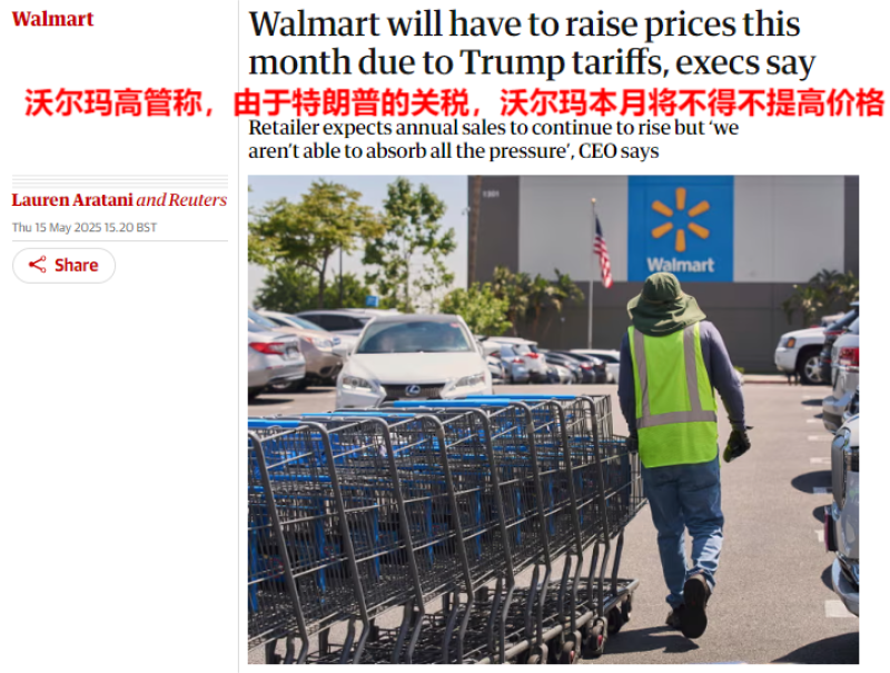 沃尔玛预计涨价 图源:the guardian