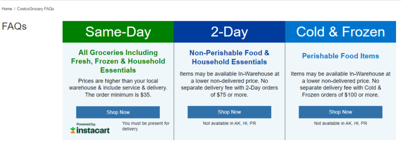 另一方面,Costco提供的送货服务对购买的产品存在较多限制。比如当日送货必须客户当面签收;两日送货只配送非易腐烂食品和家居必需品;冷冻服务专送易腐烂食品,但必然买够100美元才能免运费。