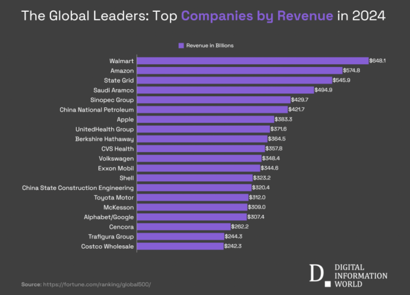 详细来看,这已经是沃尔玛连续13年位列榜首,也是亚马逊连续6年位列第二,沃尔玛连续13年荣登《财富》美国500强榜首,累计营收超过7万亿美元,紧随其后的则是联合健康集团、苹果和CVS Health。