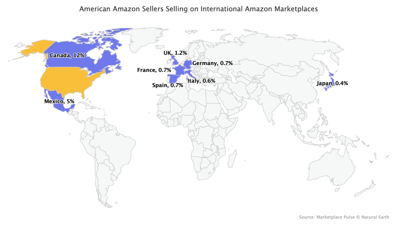 美国卖家进入不同市场比例 图源:Marketplace Pulse