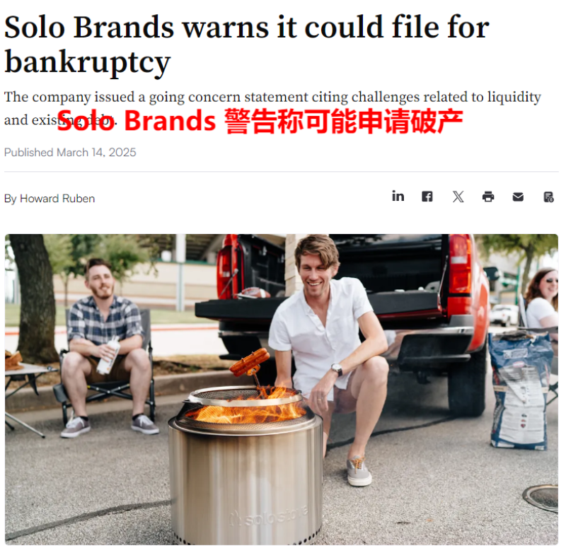 今年3月,美国知名DTC品牌Solo Brands通过公司10-K报表警告称,公司现金流紧张,且债务压力重,这些情况综合起来可能导致公司走向破产。
