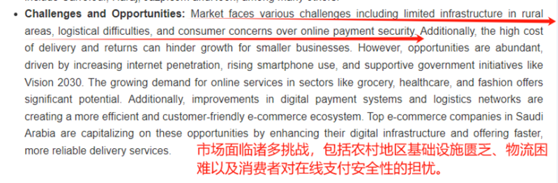不过,尽管沙特市场前景广阔,但同时也面临诸多挑战,包括农村地区基础设施匮乏、最后一英里配送效率低下以及消费者对在线支付安全性的担忧等。