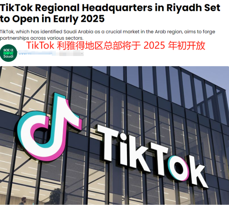 去年年底,国际社交电商平台TikTok的CEO周受资在第8届未来投资倡议会议商宣布,计划于今年在沙特首都利雅得设立区域总部。