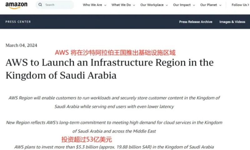 亚马逊AWS在沙特投资超53亿美元 图源:亚马逊