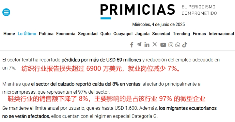 厄瓜多尔加征关税 图源:primicias