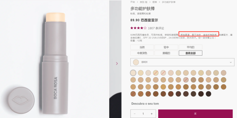 巴西地处热带地区,全年气候炎热潮湿,这种气候条件对美妆产品的质地有更高的要求。Boca Rosa充分考虑到这一因素,在产品研发时将质地轻薄作为重要考量。以其畅销的美妆棒为例,这款产品质地轻盈,涂抹在肌肤上几乎感觉不到负担,能够长时间保持清爽不油腻的状态。因此,巴西消费者完全不用担心妆容会因为汗水和油脂而变得斑驳不堪,Boca Rosa的产品让她们能够时刻保持精致的妆容。