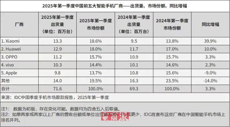 vivo出海的决定其实不难理解,毕竟国内智能手机市场经过多年的高速发展,如今已渐趋饱和。根据IDC数据,2025年第一季度中国智能手机市场出货量同比增长3.3%,随着市场愈发饱和,众多国产手机厂商的份额扩张遭遇瓶颈,增量空间愈发有限。
