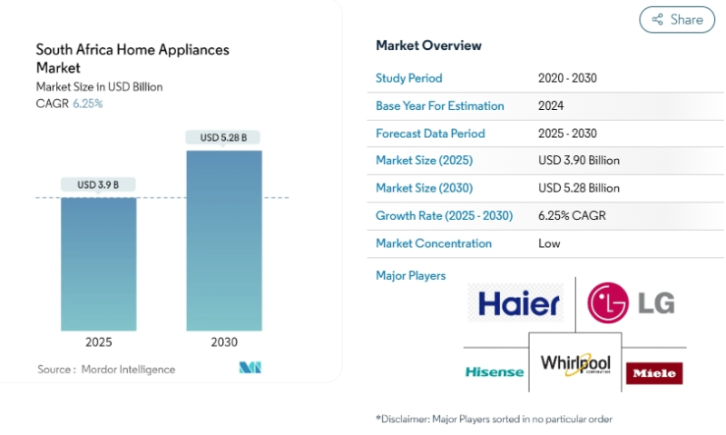 非洲小家电玩家市场份额 图源:mordorintelligence