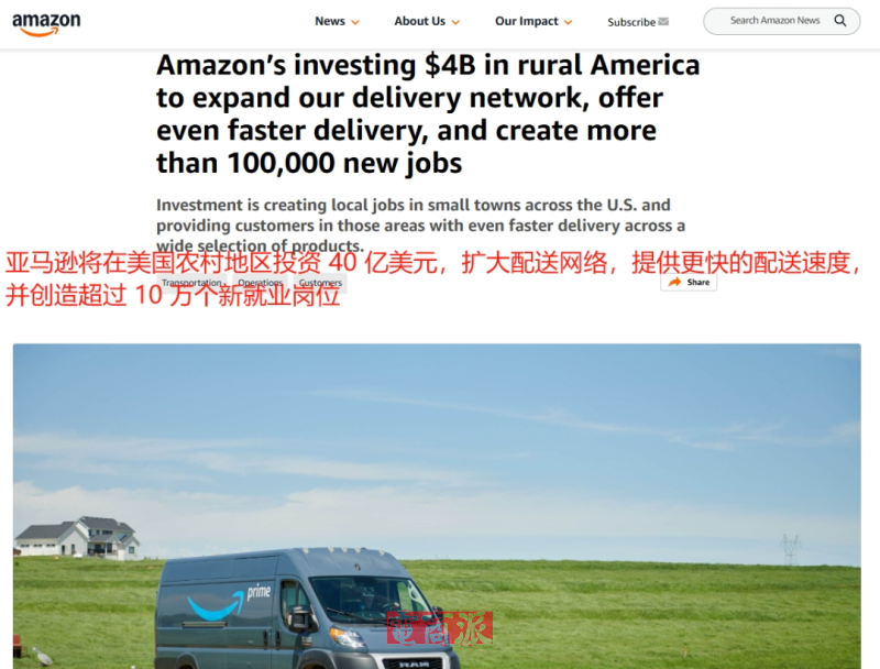 亚马逊大力发展乡村物流 图源:aboutamazon