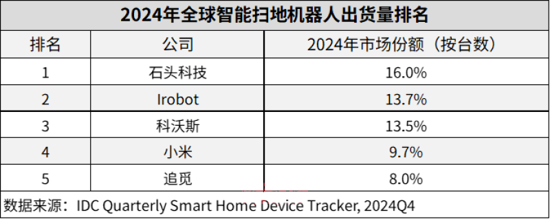 追觅科技扫地机出货量全球第五 图源:IDC咨询
