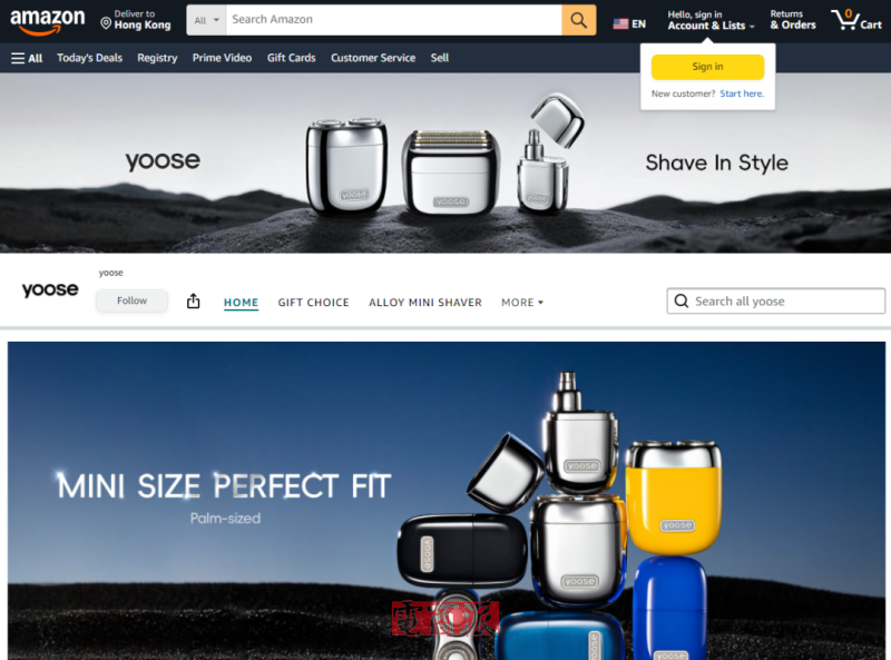 Yoose亚马逊店铺首页 图源:亚马逊