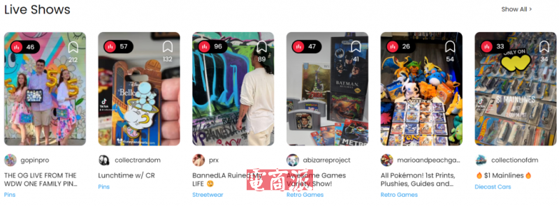 Whatnot便是抓住了用户这一心理,加上Whatnot初期售卖的东西,大多是收藏品,本身就具有一定的娱乐和消费属性。这种情形类似于抖音的拆卡、拆盲盒直播,很多人哪怕不买也会进来看一看,看着看着可能就买了。