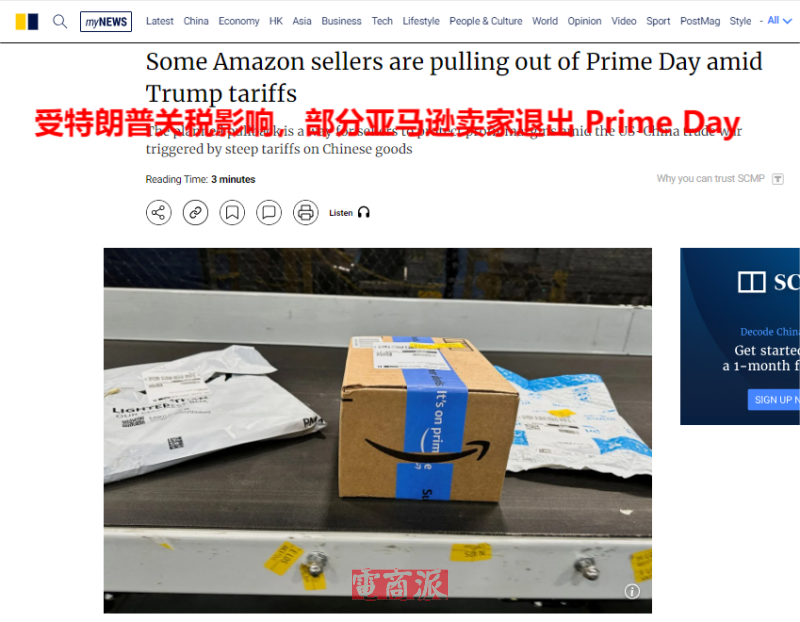 部门亚马逊卖家将退出PrimeDay 图源:SCMP