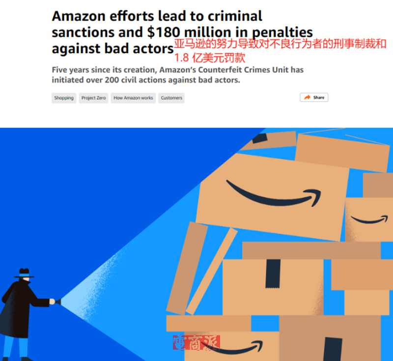 前不久,全球电商巨头亚马逊就公布了其打击假货的巨大成果:2020年至今,亚马逊反假冒犯罪部门已对不良行为发起200多起民事诉讼,累计为品牌和受害者赢得了超过1.8亿美元的法院赔偿和判决。其中有65位造假者被判处监禁,有一位卖家的刑期长达六年半。