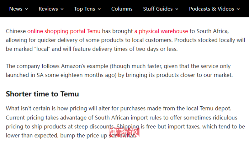 TEMU在南非设立本地仓库 提供次日达服务