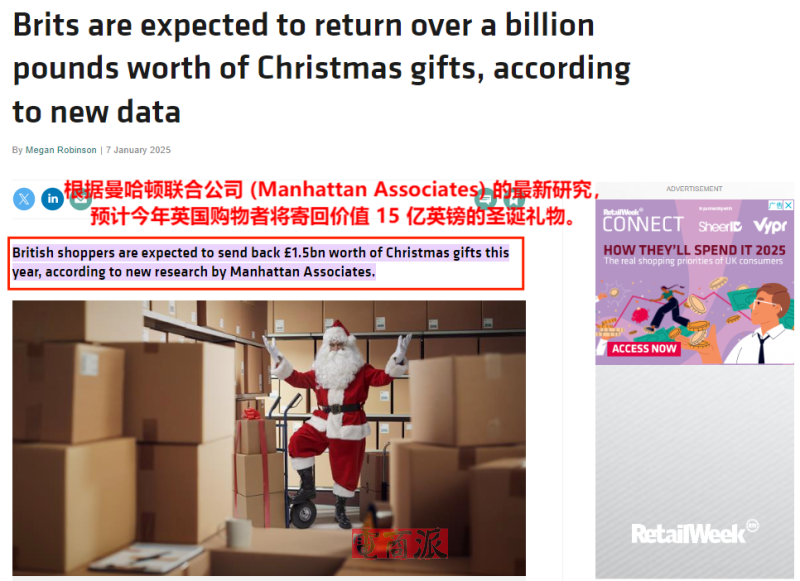 英国人圣诞后大批退货 图源:RetailWeek
