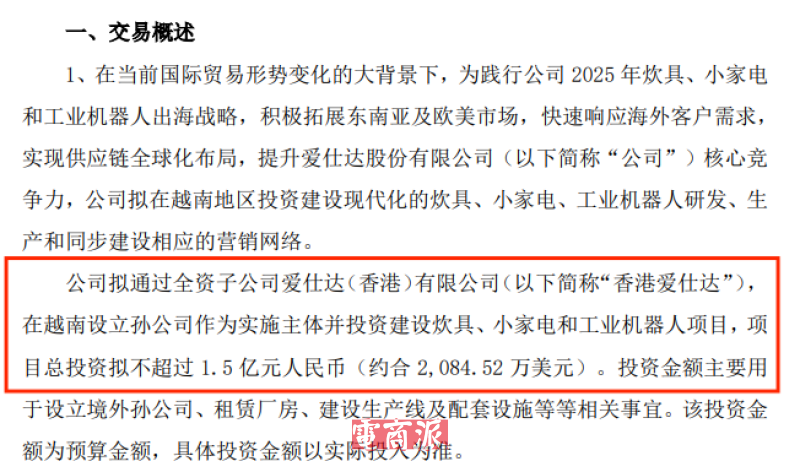另一方面,有生产能力的卖家也纷纷将产能全球化提上日程。4月,工具大卖巨星科技表示,,在全球“对等关税”背景下,公司未来将继续提高东南亚工厂产能。6月,国产家电大卖爱仕达发布公告称,将斥资不超过1.5亿元,在越南同奈省建设新产能,用于建设炊具、小家电及工业机器人项目。
