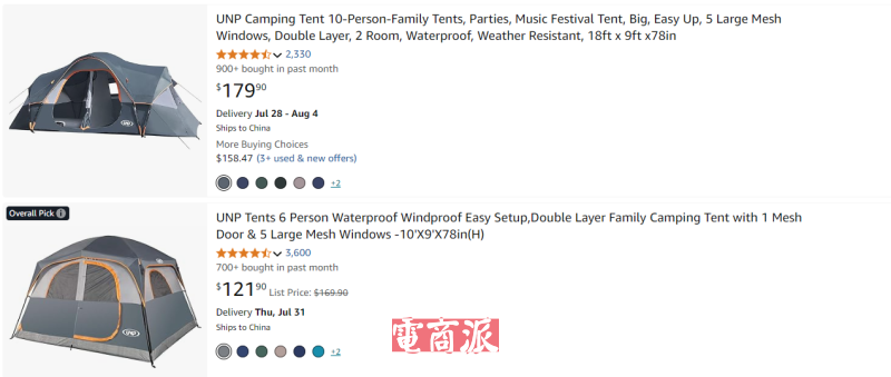 UNP帐篷在亚马逊热销 图源:Amazon