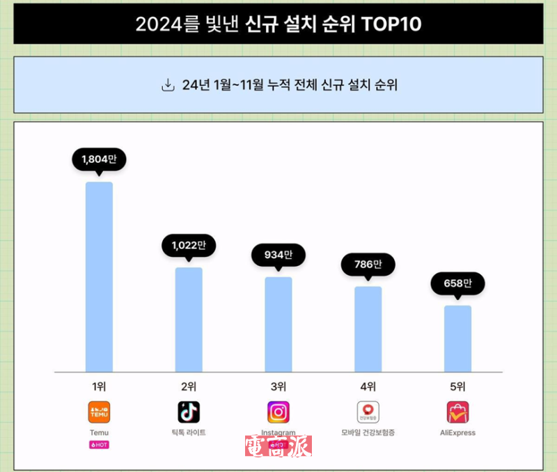 Temu领跑韩国下载量榜单 图源:IGA Work