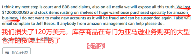 店铺被封损失百万美金 图源:亚马逊卖家中心