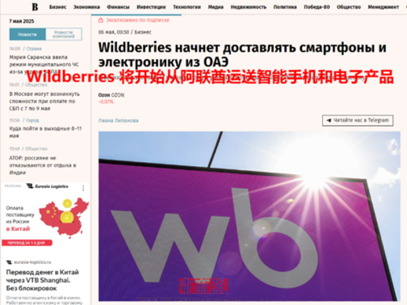 今年上半年,Wildberries代表就透露,首批阿联酋卖家已经完成平台注册,Wildberries将于5月开始销售来自阿联酋卖家的商品。从此之后,任何Wildberries提货点都可以接收来自阿联酋的货物,预计配送时效在六天左右,但具体情况可能因库存容量或清关程序等因素发生变化。