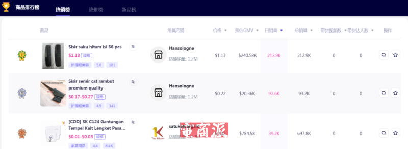 “事实胜于雄辩”。打开Echotik数据统计网站可以看到,在热销榜上,各类单品的销售表现都十分亮眼,日出万单的商品不在少数。仅仅是在7月29日这一天,单日销量超过两万件的就有7个链接。其中,位居榜首的一把梳子在近两天迎来了销量爆发,单日卖出20多万件,而在此之前的一个月时间里,该产品的销量几乎挂0。