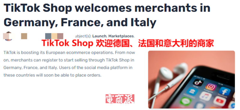 TikTok Shop开通欧洲三大站点 图源:ecommercenews.eu
