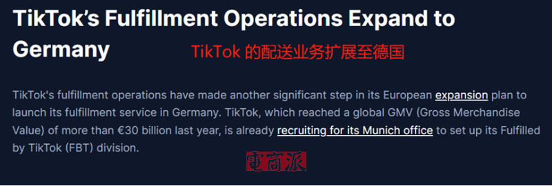 TikTok物流服务进入德国 图源:ecommerce bridge