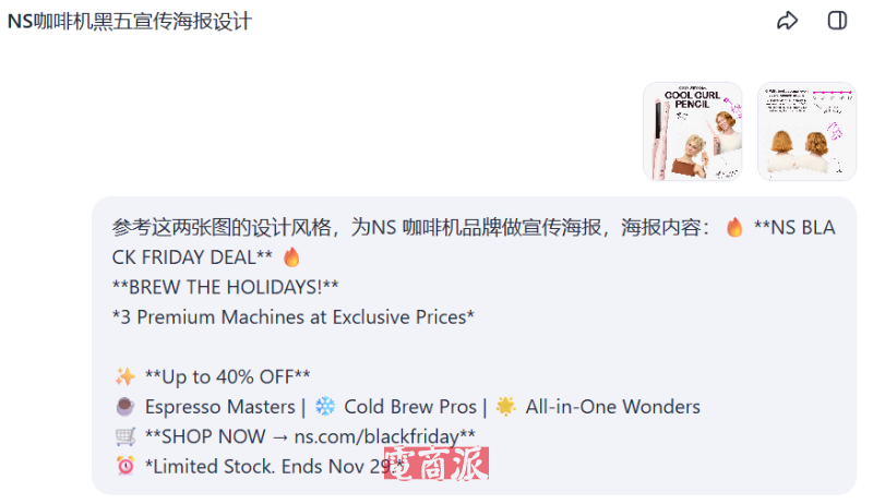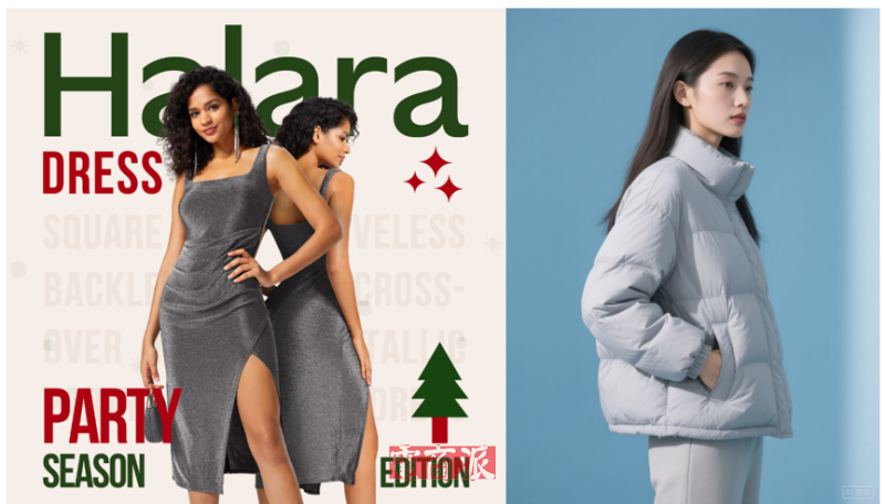 具体如何操作,看一些实例。首先是生成营销海报,参考去年黑五爆火的运动女装品牌Halara,模仿Halara的海报风格做一张营销海报。
