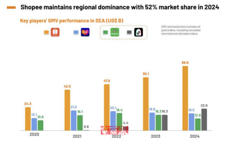 新加坡咨询公司Momentum Work(墨腾创投)发布的《2025东南亚电商报告》就显示,2024年全年,东南亚电商增速稳中有进,电商平台交易总额(GMV)达到1284亿美元,同比增长12%。