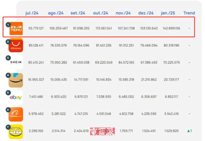 Temu成为巴西访问量最高的电商平台 图源:e-commerce brasil
